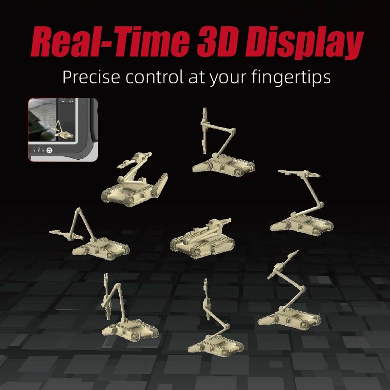 Vì robot tháo bom thường hoạt động ngoài tầm nhìn trong các nhiệm vụ, thông tin thời gian thực về góc và vị trí không gian của các khớp của robot rất quan trọng đối với các nhà điều hành. The REOD400 uses high-speed links and advanced computer technology to not only achieve real-time feedback of the robot's status information but also to employ leading 3D virtual display technology for remote real-time display of the robot's 3D statusĐiều này làm cho robot cảm thấy "gần bên tay" ngay cả khi nó là "ở xa", cho phép hoạt động trực quan hơn.