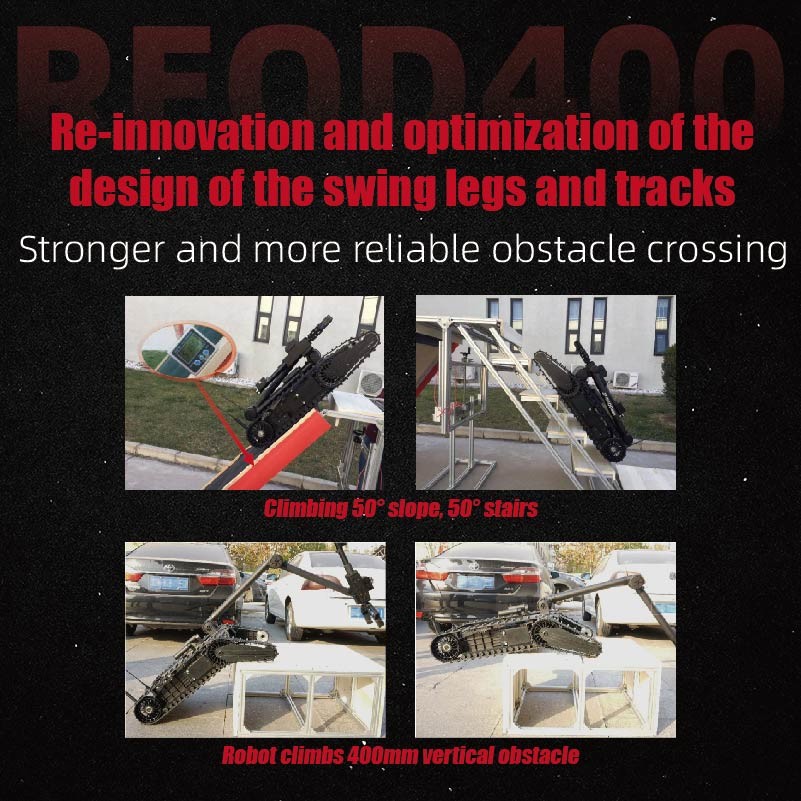 Robot REOD400 EOD là một giải pháp tiên tiến để xử lý đạn dược nổ (EOD) trong môi trường có nguy cơ cao.làm cho nó rất hiệu quả cho các hoạt động như chống khủng bố đô thịRobot nhỏ gọn và nhẹ, với kích thước ≤830mm × 600mm × 460mm (đóng đầy đủ) và trọng lượng ≤37kg.Nó có tốc độ tối đa ≥1.8m/s với 5 bánh răng và ổ đĩa biến động liên tục, khoảng cách tránh chướng ngại vật ≥ 300mm và khả năng leo thang và leo cầu thang lên đến 45°,đảm bảo khả năng cơ động và thích nghi vượt trội trong các địa hình khác nhau.